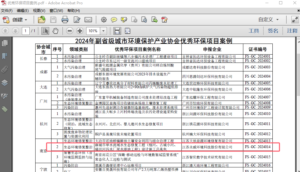 江蘇省污染環(huán)境治理工程設(shè)計(jì)能力評(píng)價(jià)證書(shū)(甲級(jí))
