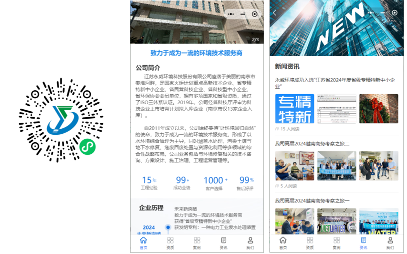 可以通過(guò)微信“掃一掃”關(guān)注二維碼,也可以在微信小程序直接搜索“江蘇永威環(huán)境科技股份有限公司”加關(guān)注對(duì)本公司進(jìn)行更深入的了解。